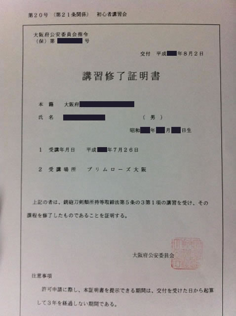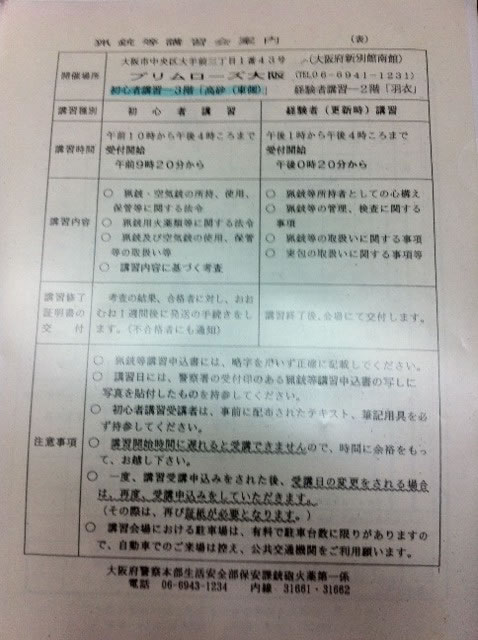 ただし! 今回はただ「申請が受理された」というだけであって、まだ「申請が通った」わけではないのが日本一銃所持に厳しいとされる大阪府のつらいところ。他府県では「受理される=申請が通る」だそうですが、大阪だとその前に公安委員会の身辺調査があり、それにパスしないと申請が通らないのです! チクショー! 僕何も悪いことしてません!(たぶん)